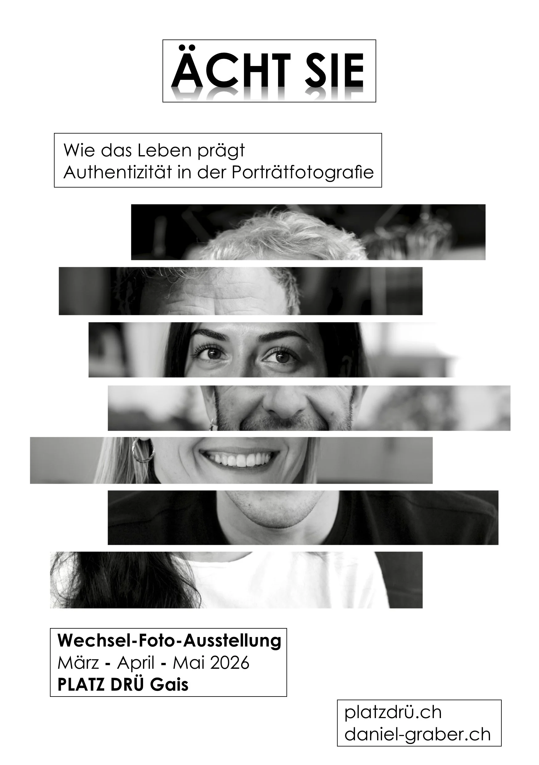Die Bilder sind vom 29. März bis 31. Mai 2026 im PLATZ DRÜ Kafi • Deko • Events auf dem Dorfplatz in Gais zu sehen.